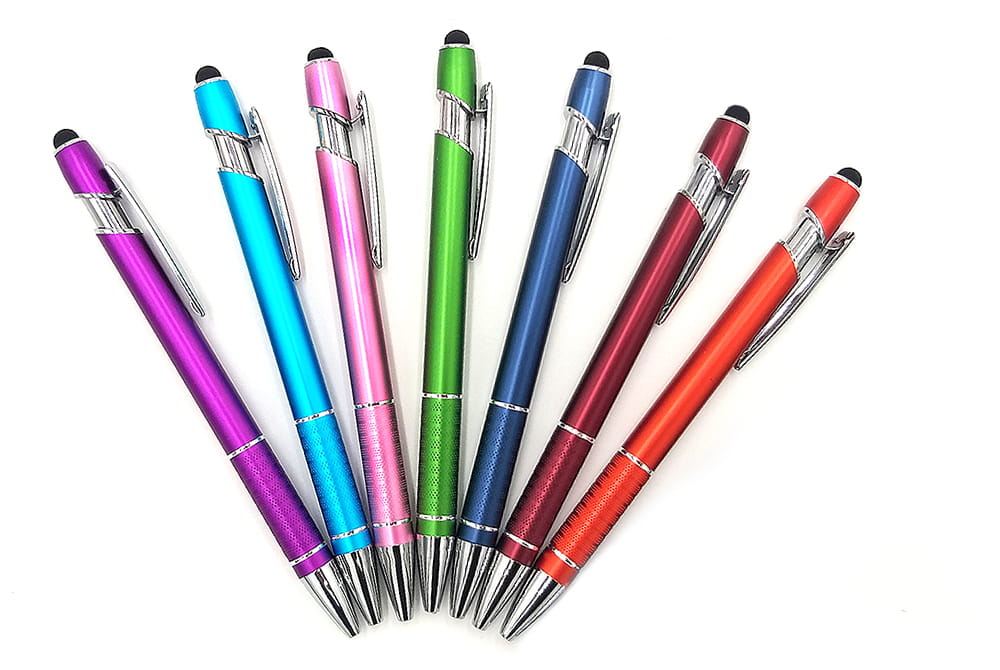 Wykonany z metalu, z chowanym, wymiennym wkładem. Zakończony gumką, pozwalającą na rysowanie lub pisanie po ekranie dotykowym.