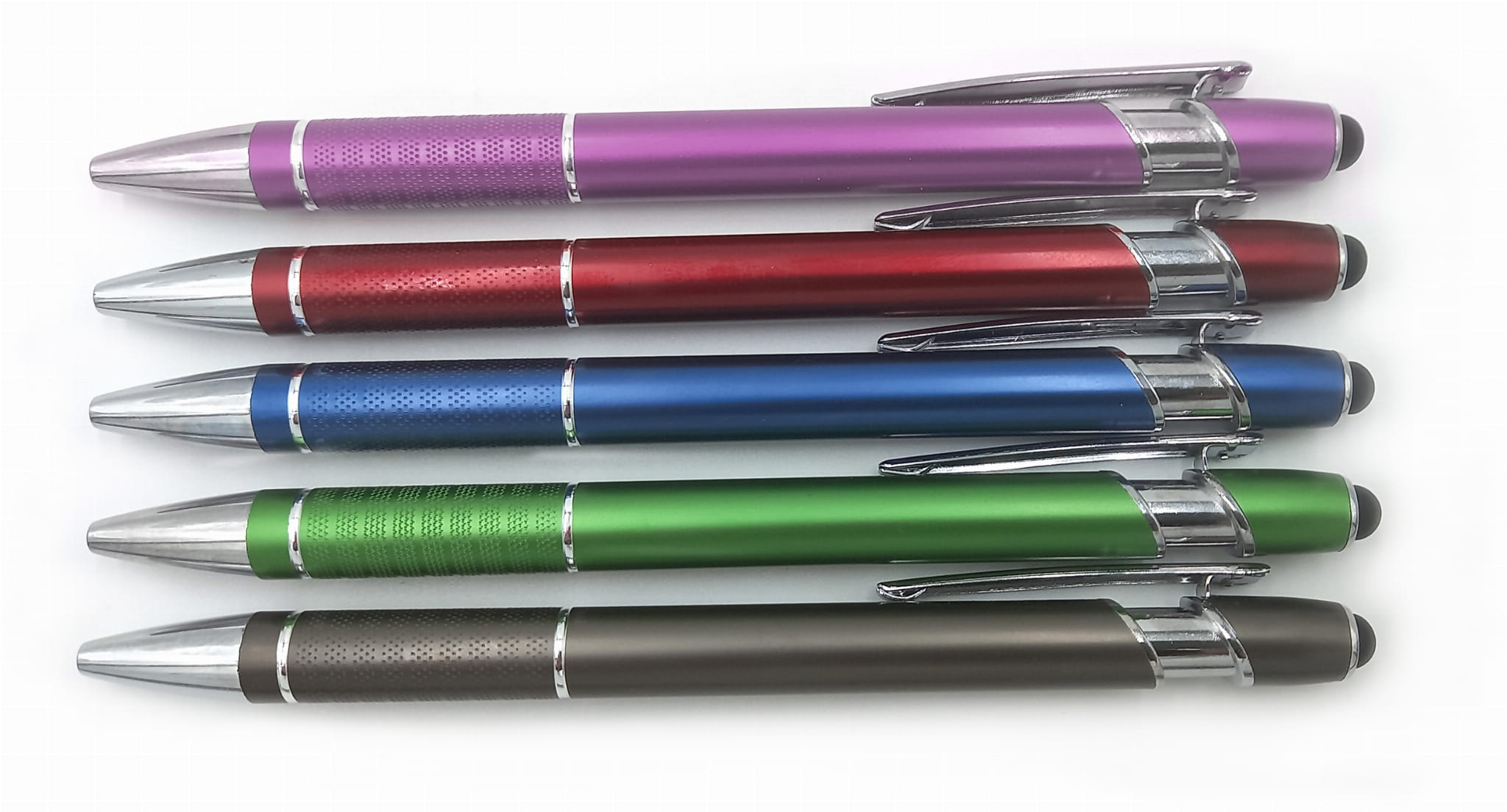 Wykonany z metalu, z chowanym, wymiennym wkładem. Zakończony gumką, pozwalającą na rysowanie lub pisanie po ekranie dotykowym.