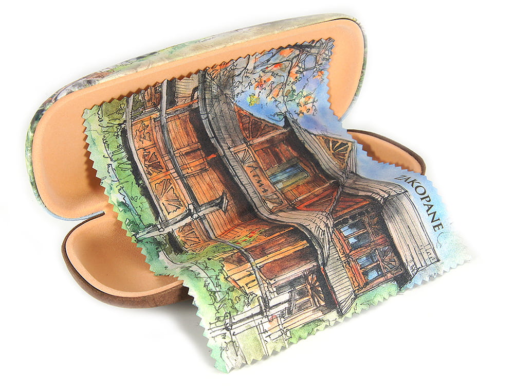 Etui na okulary korekcyjne i ściereczka, akwarele Zakopane