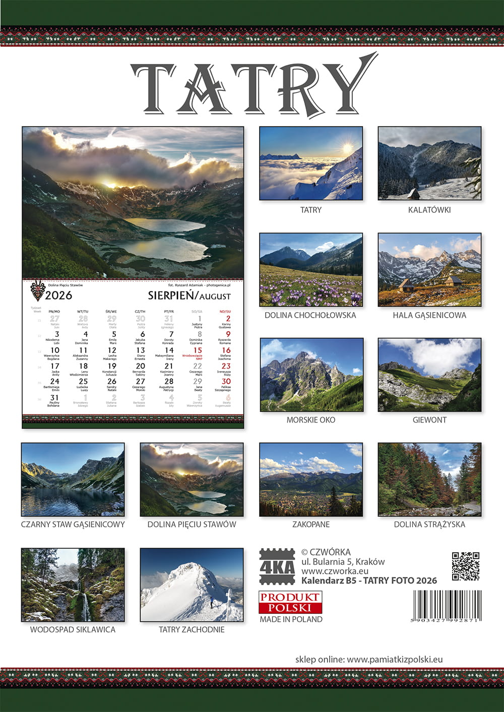 Kalendarz biurkowy wieloplanszowy 2026 Tatry fotografie B5
