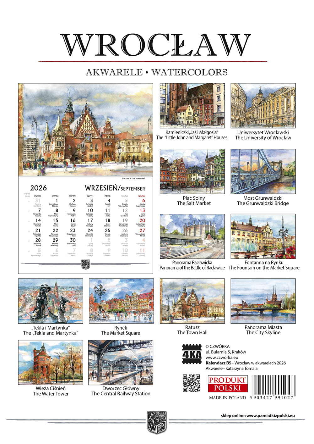 Kalendarz biurkowy wieloplanszowy 2026 Wrocław akwarele Katarzyna Tomala B5