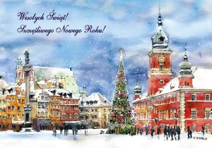Kartka składana - Karnet Classic B6 K155 akwarela Boże Narodzenie