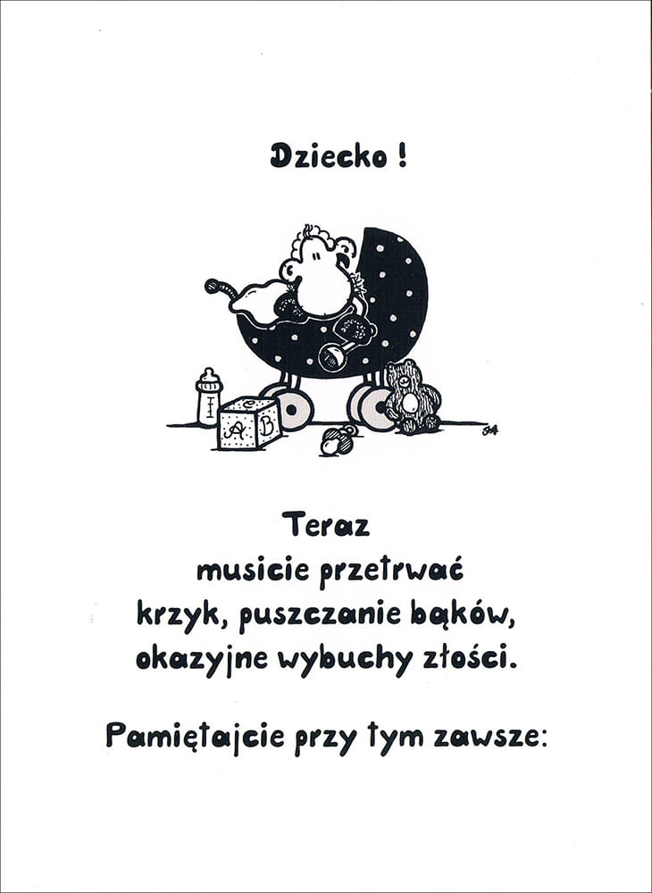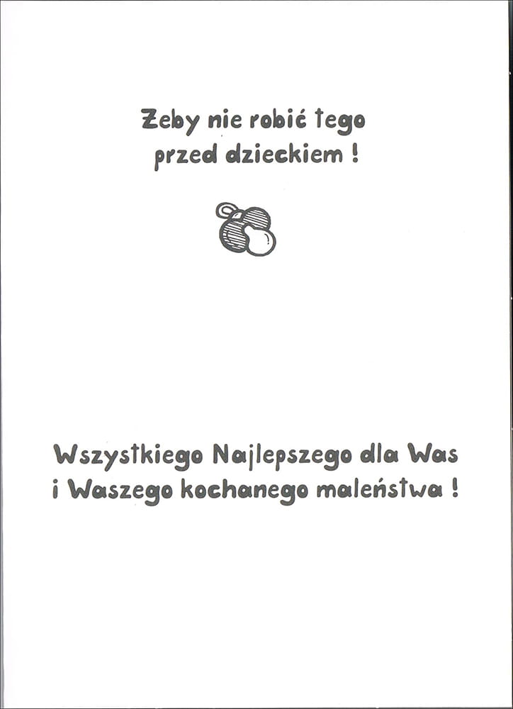 - Wnętrze karnetu w kolorze białym ze śmiesznymi życzeniami.