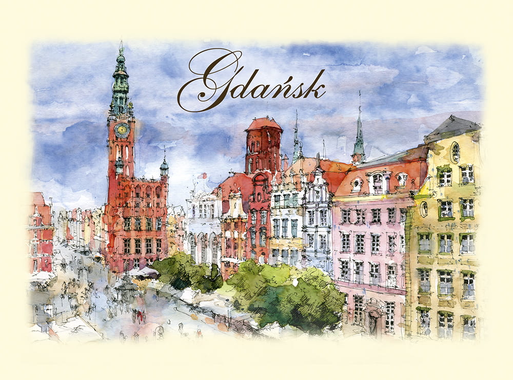 Kartka składana - karnet akwarelowy B6 Gdańsk 08