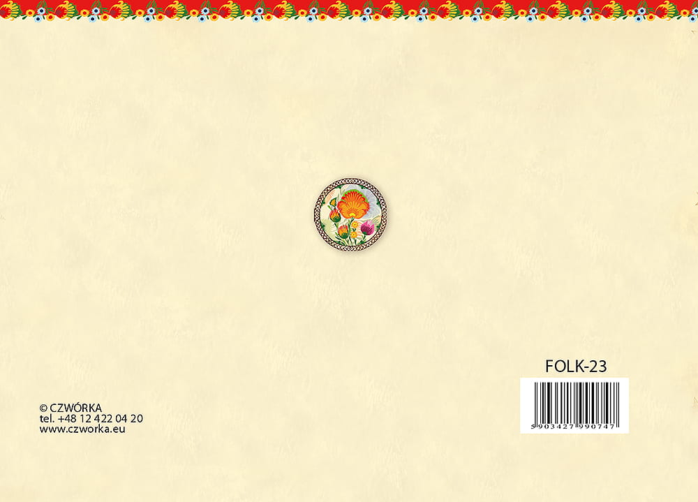 Kartka w formie rozkładanego karnetu o formacie B-6 po złożeniu.