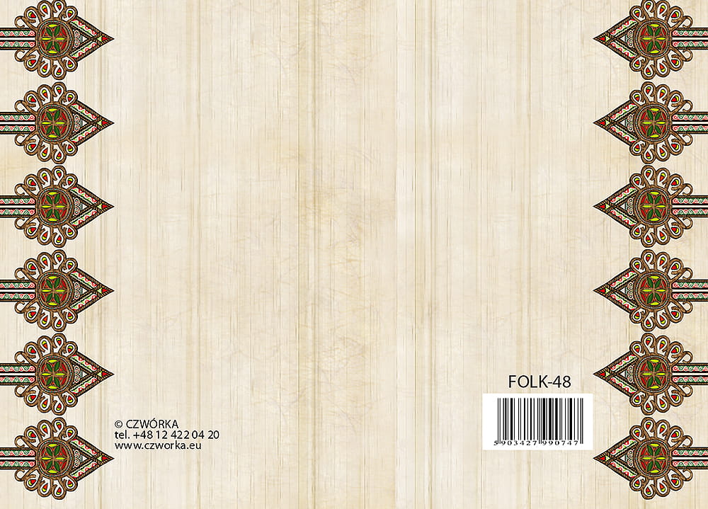 Kartka w formie rozkładanego karnetu o formacie B-6 po złożeniu.