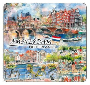 Przedstawia artystyczny obraz holenderskiej stolicy - Amsterdamu.