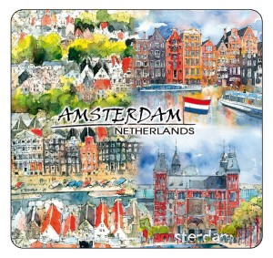 Przedstawia artystyczny obraz holenderskiej stolicy - Amsterdamu.
