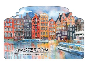 Przedstawia artystyczny obraz holenderskiej stolicy - Amsterdamu.