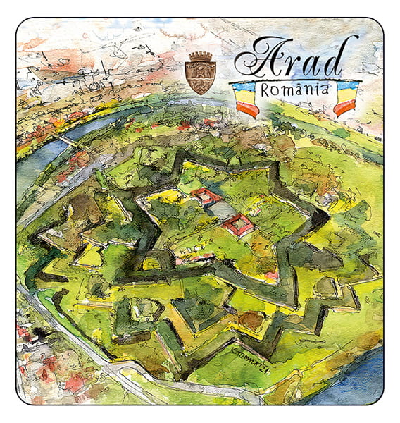 Przedstawia artystyczny obraz najciekawszych rumuńskiego miasta - Arad.