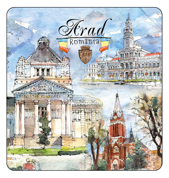 Przedstawia artystyczny obraz najciekawszych rumuńskiego miasta - Arad.