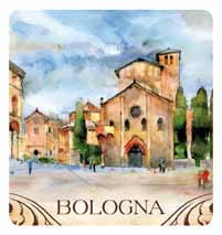 Przedstawia artystyczny obraz najciekawszych zakątków włoskiej Bolonii.