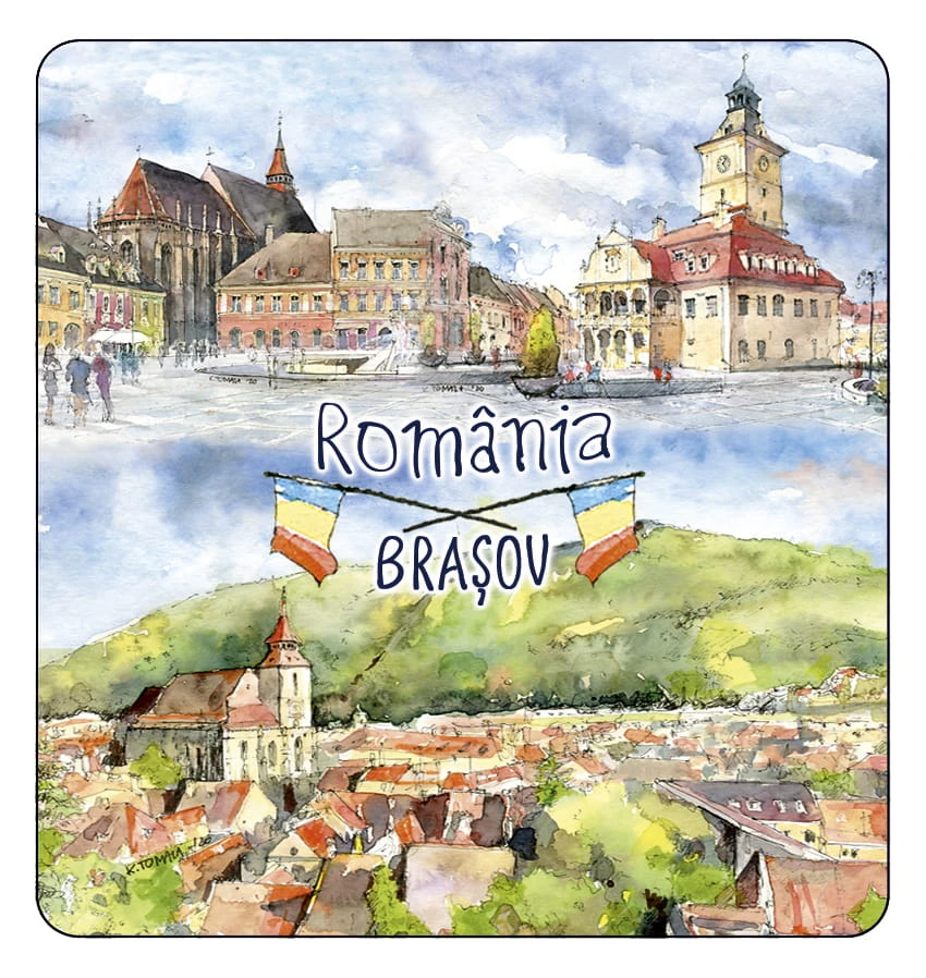 Przedstawia artystyczny rumuńskiego miasta Braszów leżącego w Siedmiogrodzie.