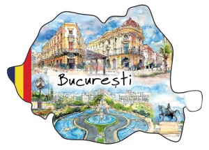 Przedstawia artystyczny obraz najciekawszych zakątków rumuńskiej stolicy Bukaresztu.