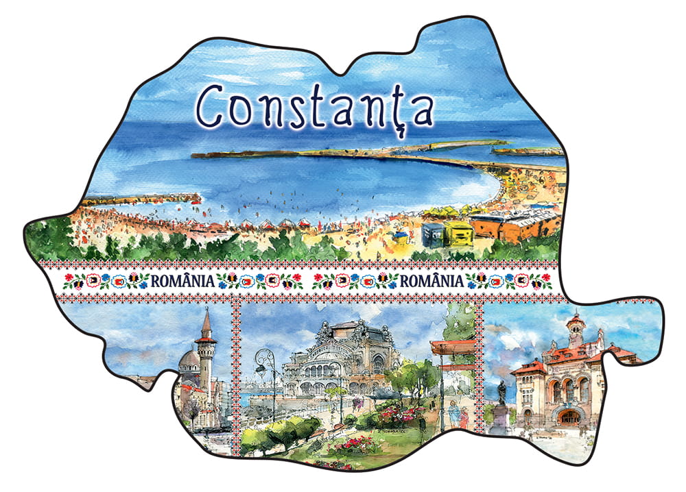 Przedstawia artystyczny obraz najciekawszych zakątków rumuńskiej Konstancy.
