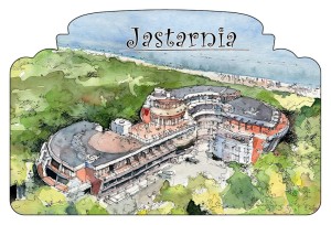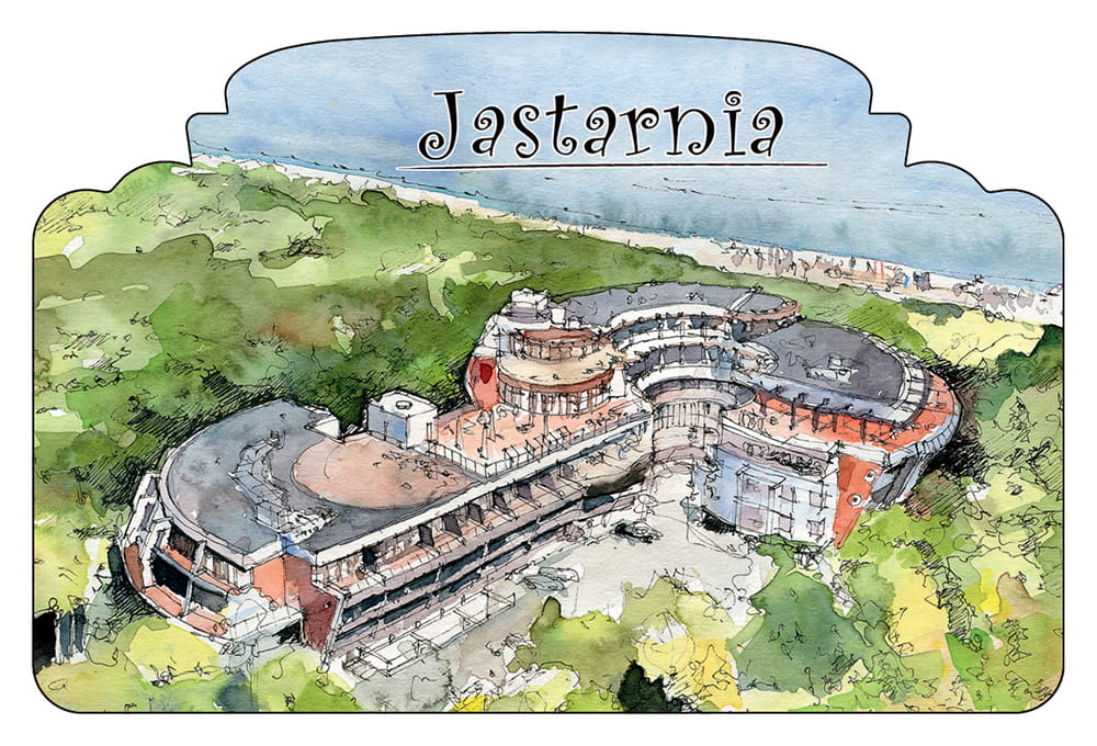 Przedstawia artystyczny obraz najciekawszych obiektów Jastarni.
