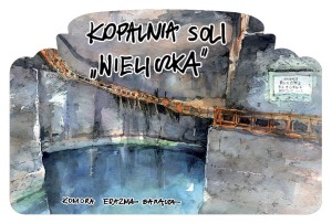 Przedstawia artystyczny obraz najciekawszych miejsc Kopalni Soli w Wieliczce.