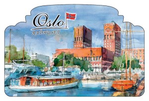Przedstawia artystyczny obraz najciekawszych architektonicznych i historycznych obiektów norweskiej stolicy Oslo.