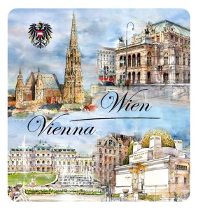 Przedstawia artystyczny obraz najciekawszych architektonicznych i historycznych obiektów Wiednia.
