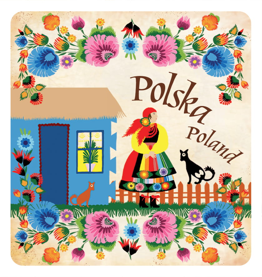 Wzór oparty na tradycyjnej polskiej twórczości ludowej z okolic Łowicza,