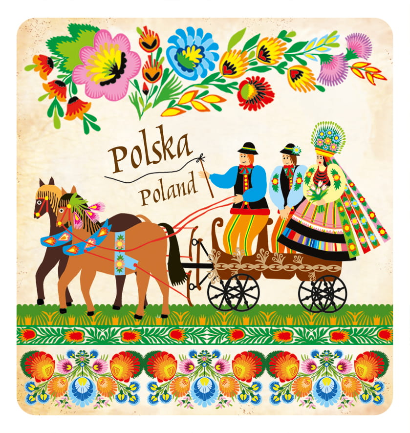 Wzór oparty na tradycyjnej polskiej twórczości ludowej z okolic Łowicza,