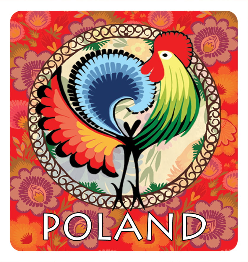 Wzór oparty na tradycyjnej polskiej twórczości ludowej z okolic Łowicza,