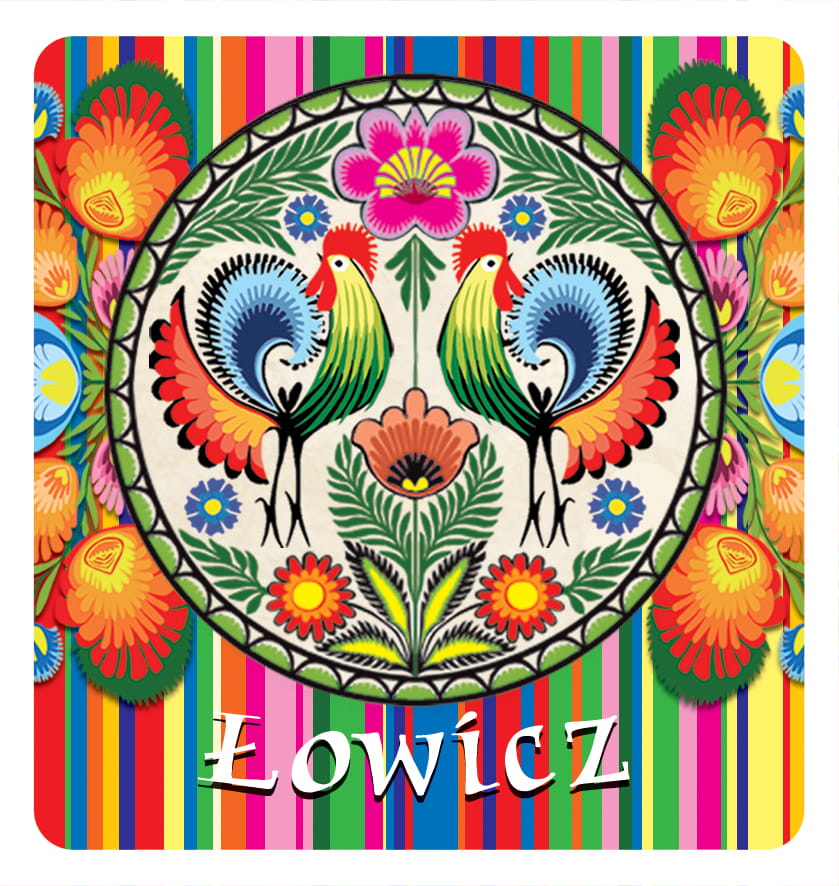 Wzór oparty na tradycyjnej polskiej twórczości ludowej z okolic Łowicza,