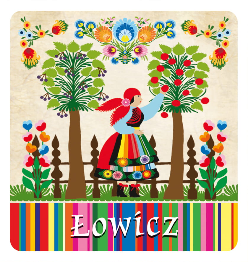Wzór oparty na tradycyjnej polskiej twórczości ludowej z okolic Łowicza,