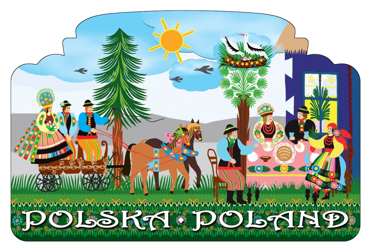 Wzór oparty na tradycyjnej polskiej twórczości ludowej z okolic Łowicza,
