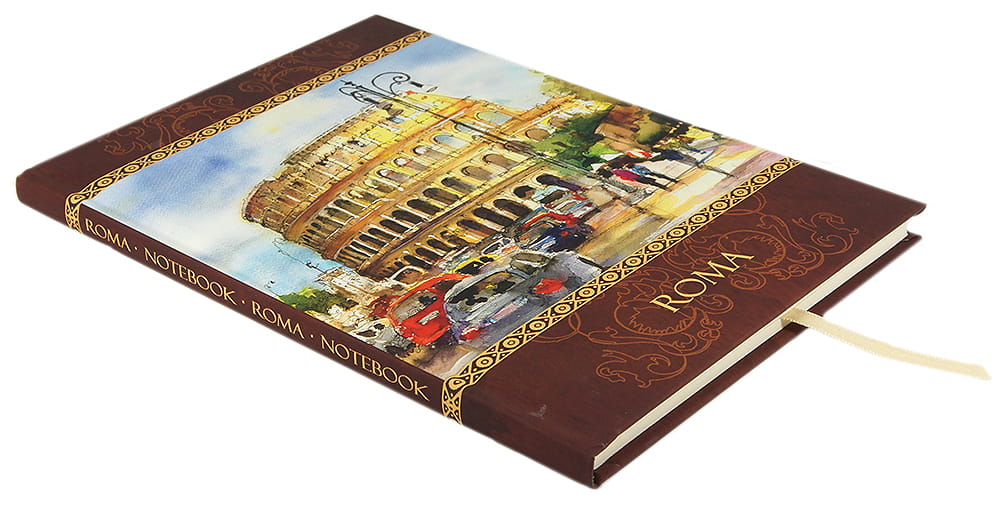Wzór opracowany przez wydawnictwo "Czwórka", przedstawia charakterystyczne obiekty architektoniczne Rzymu w akwarelowej wizji Katarzyny Tomali.
