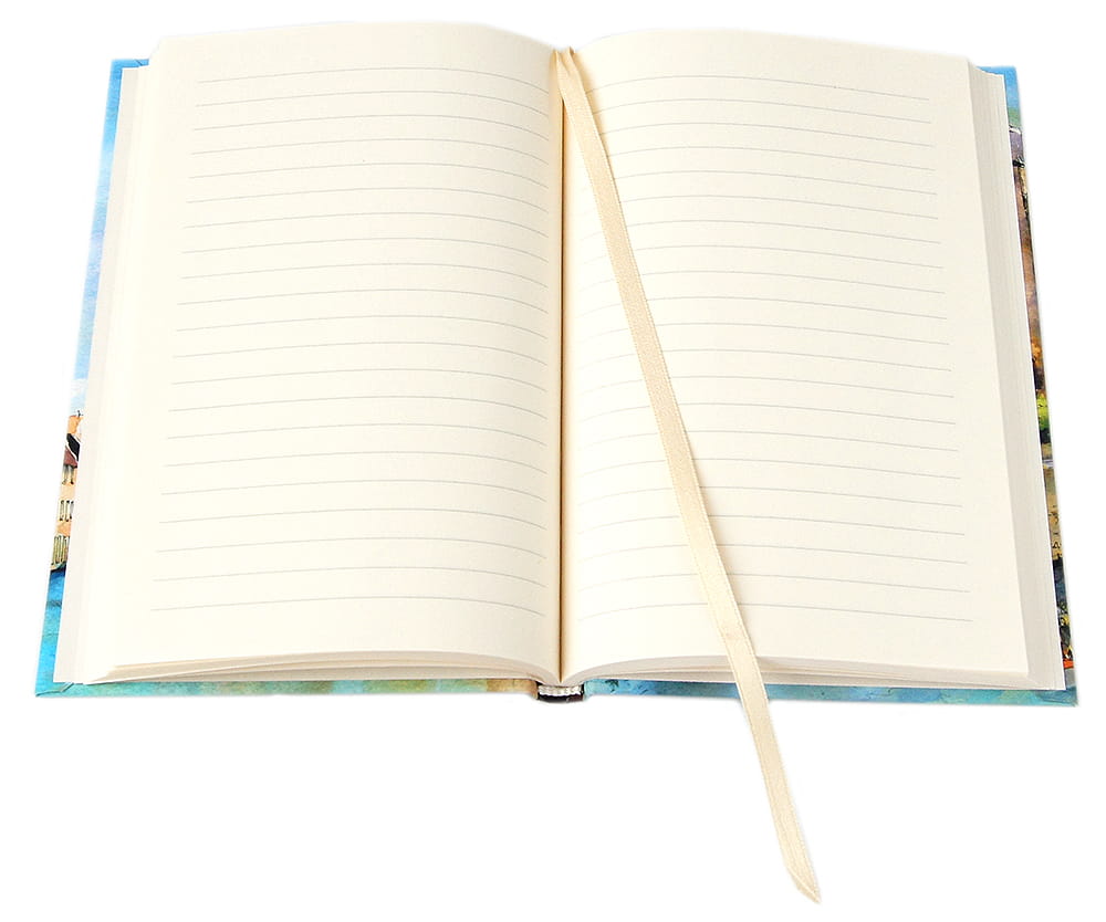 Oprawa szyta i klejona, wstążkowa zakładka . W środku kremowy