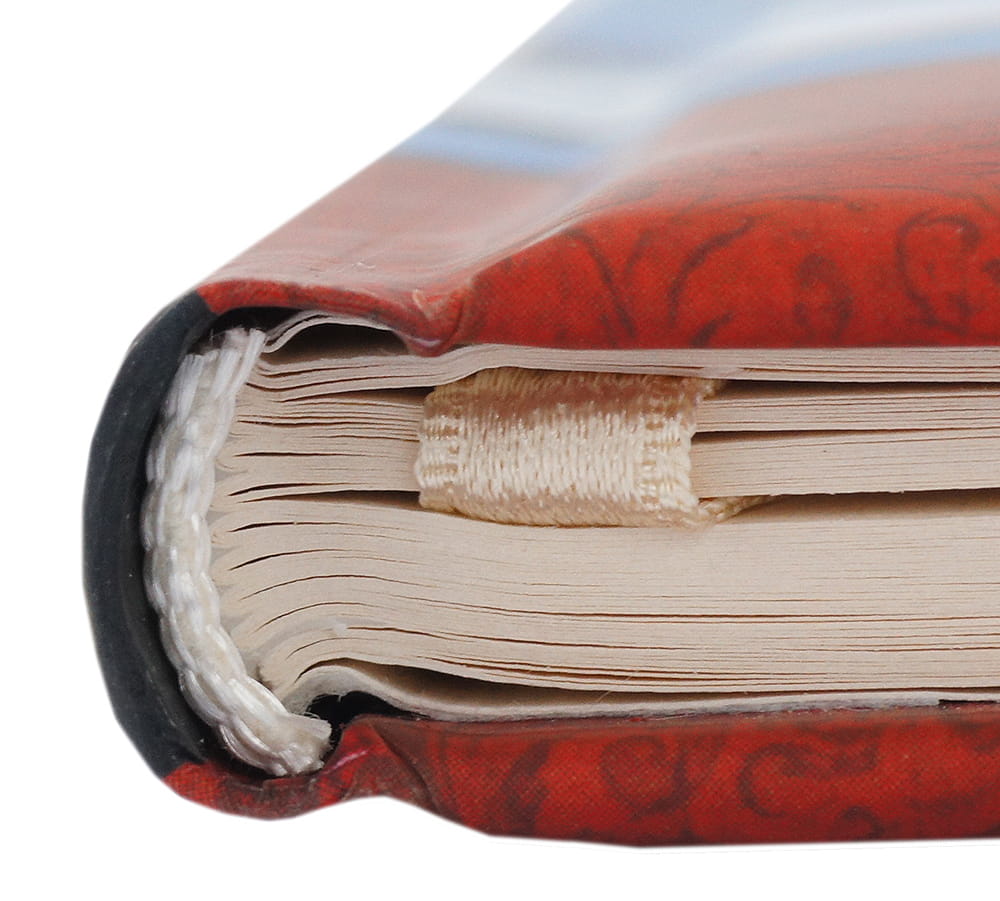 Oprawa szyta i klejona, wstążkowa zakładka . W środku kremowy