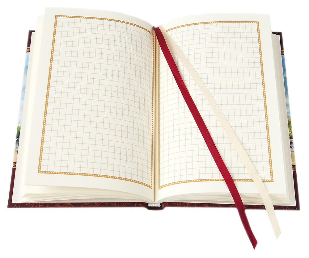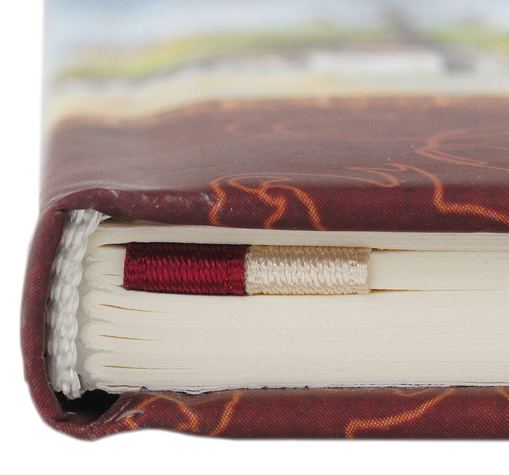 Oprawa szyta i klejona, wstążkowa zakładka . W środku kremowy