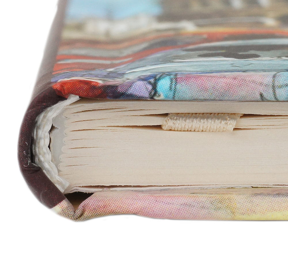 Oprawa szyta i klejona, wstążkowa zakładka . W środku kremowy