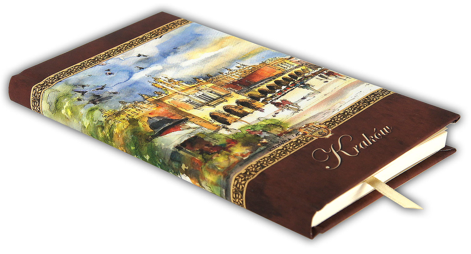 Kartki: kremowy papier, drukowany w linie o kolorze szarym, wstążkowa zakładka.
