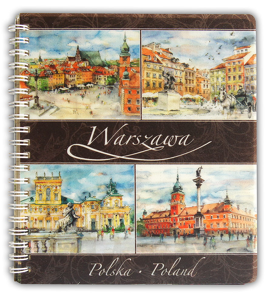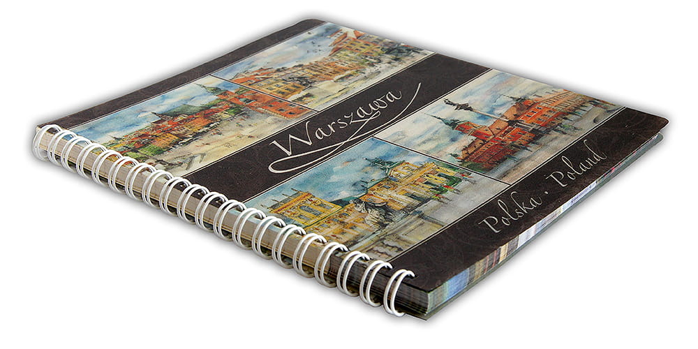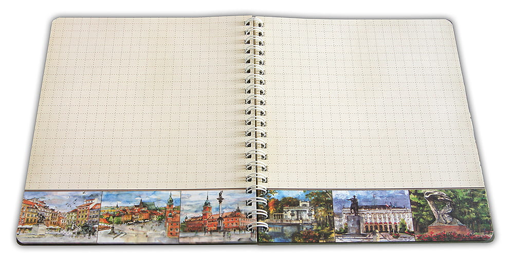 mocną okładką z PCV. Kartki w kratkę z motywem graficznym