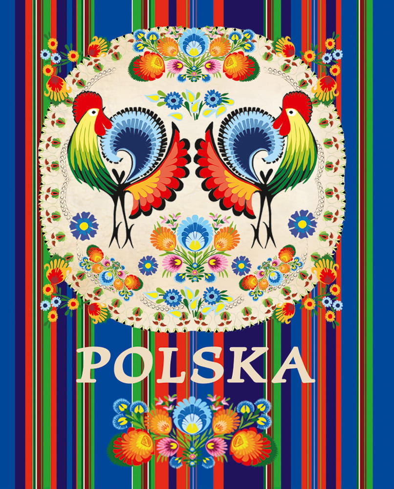 Wzór oparty na tradycyjnej polskiej twórczości ludowej z okolic Łowicza,