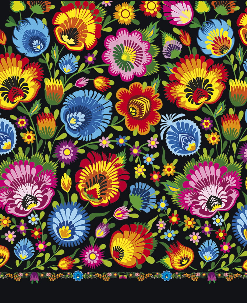 Wzór oparty na tradycyjnej polskiej twórczości ludowej z okolic Łowicza,