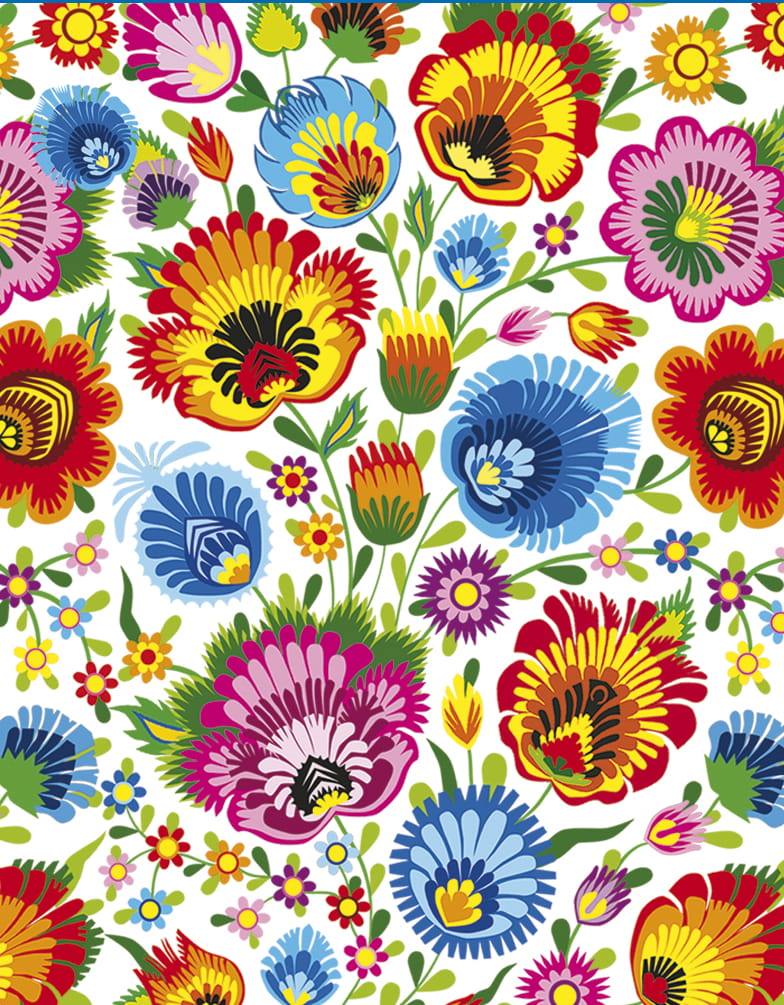 Wzór oparty na tradycyjnej polskiej twórczości ludowej z okolic Łowicza,