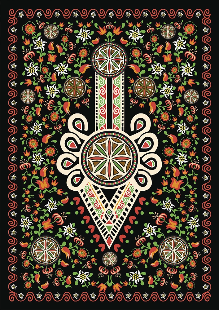 Wzór oparty na tradycyjnych małopolskich wzorach ludowych.