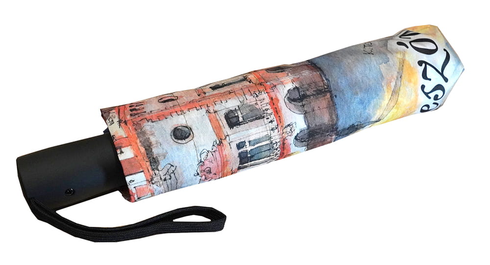 Parasolka w barwne kwiaty z reprodukcjami akwareli z Rzeszowa.