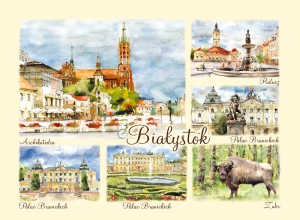 Przedstawia artystyczny obraz najciekawszych widoków i zakątków Białegostoku,
