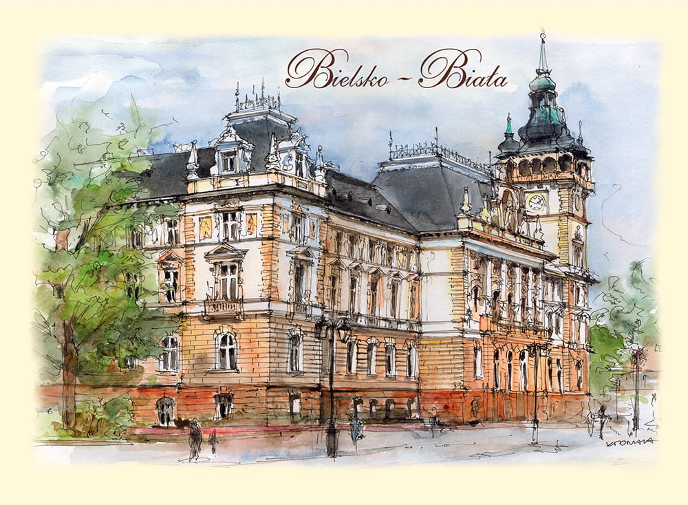 Przedstawia artystyczny obraz najciekawszych widoków i zakątków Bielska Białej,