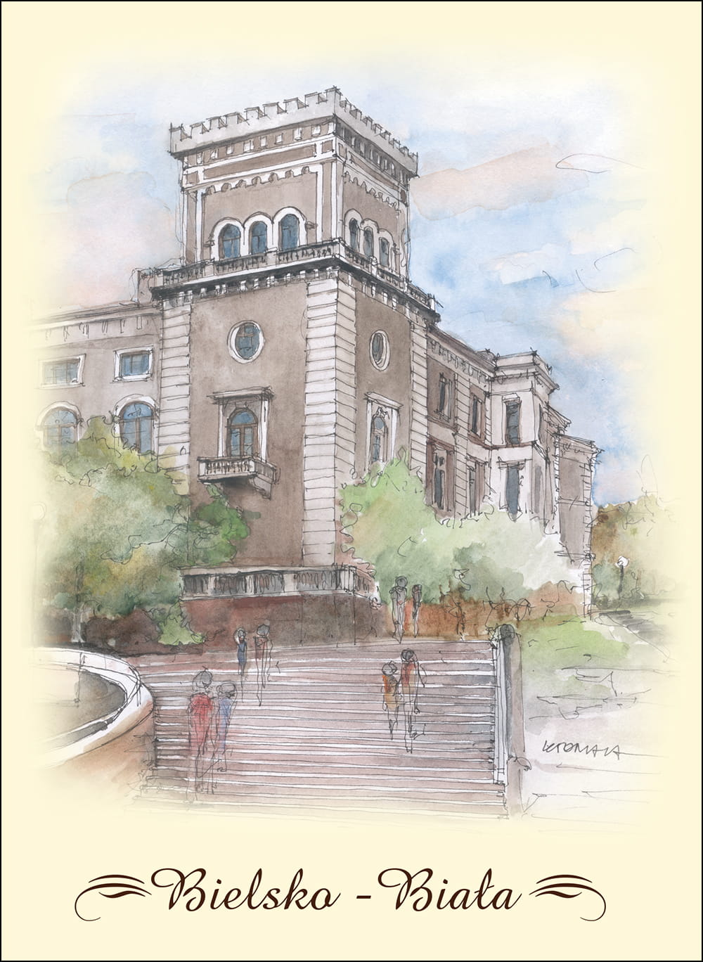 Przedstawia artystyczny obraz najciekawszych widoków i zakątków Bielska Białej,