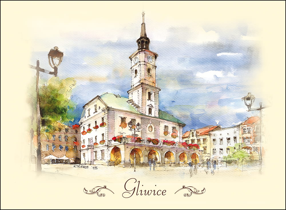 Przedstawia artystyczny obraz najciekawszych widoków i zakątków Gliwic,