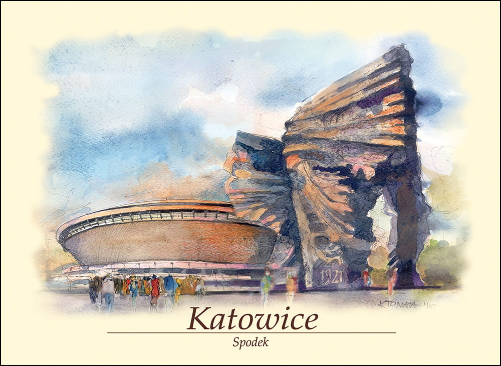 Przedstawia artystyczny obraz najciekawszych widoków i zakątków Katowic,