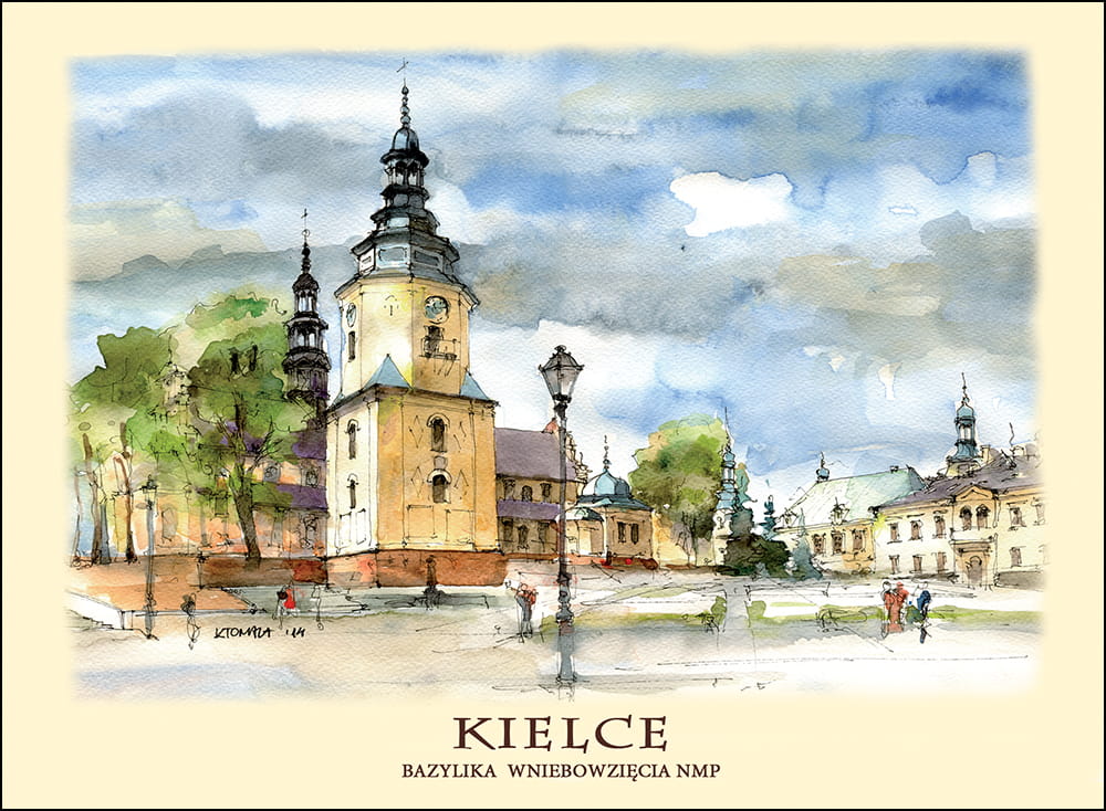 Przedstawia artystyczny obraz najciekawszych widoków i zakątków Kielc,