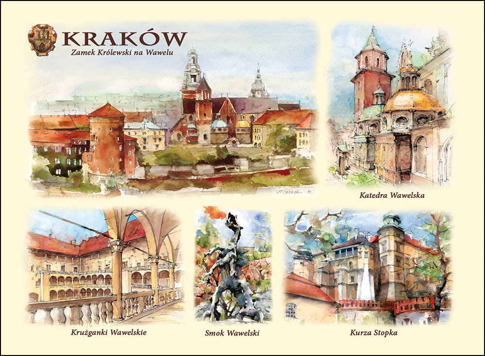 Przedstawia artystyczny obraz najciekawszych widoków i zakątków miasta Krakowa,