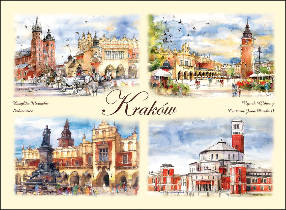 Przedstawia artystyczny obraz najciekawszych widoków i zakątków miasta Krakowa,