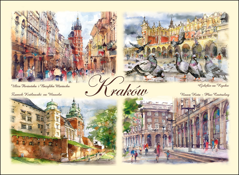 Przedstawia artystyczny obraz najciekawszych widoków i zakątków miasta Krakowa,